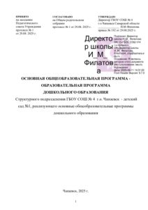 Структурное подразделение ГБОУ СОШ №4 г.о.Чапаевск - детский сад №1, реализующее основные общеобразовательные программы дошкольного образования