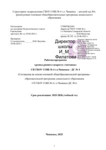 Структурное подразделение ГБОУ СОШ №4 г.о.Чапаевск - детский сад №1, реализующее основные общеобразовательные программы дошкольного образования